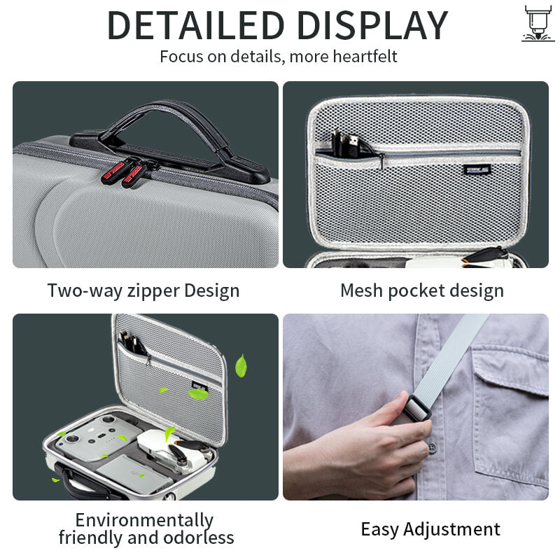 Dieser leichte Koffer bietet passgenaue Ausschnitte für Drohne, Fernsteuerung sowie Ladestation.