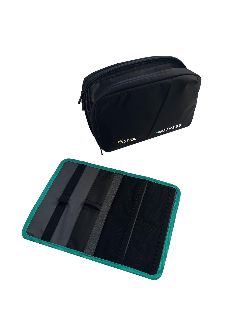 Im Inneren stehen mehrere kleine Fächer sowie eine herausnehmbare Werkzeugtafel zur Verfügung.