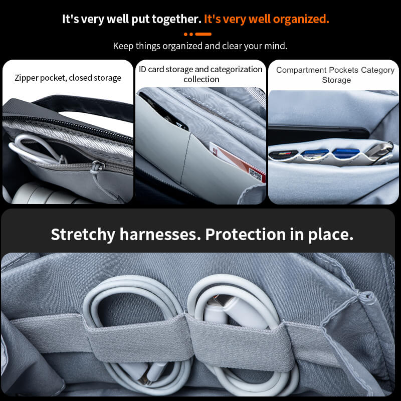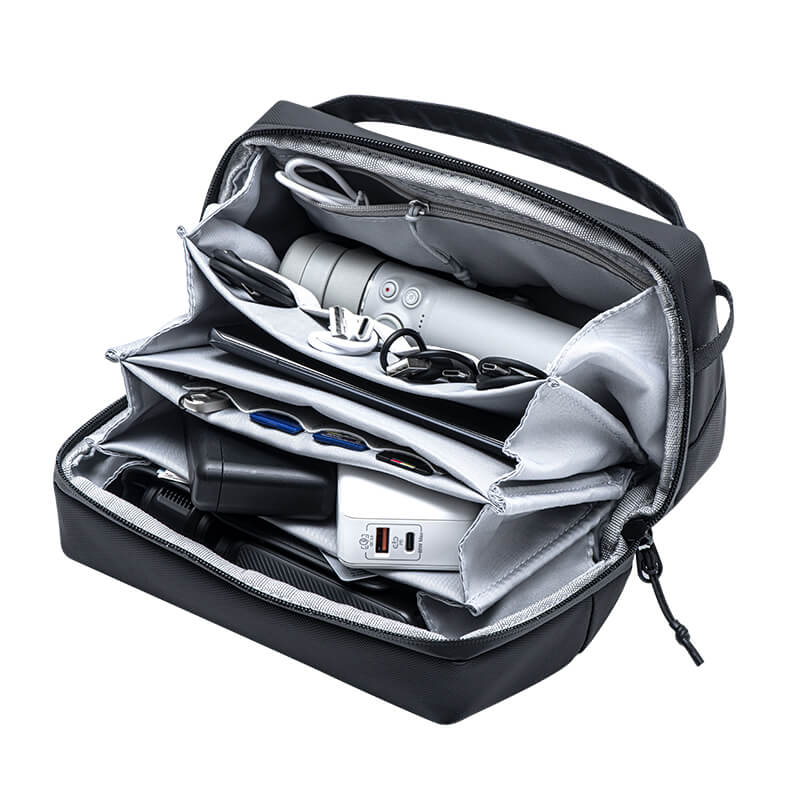 - 2 große Hauptfächer für Kameras, Akkus, Ladestationen oder Selfie Sticks