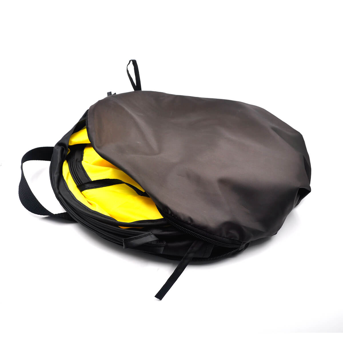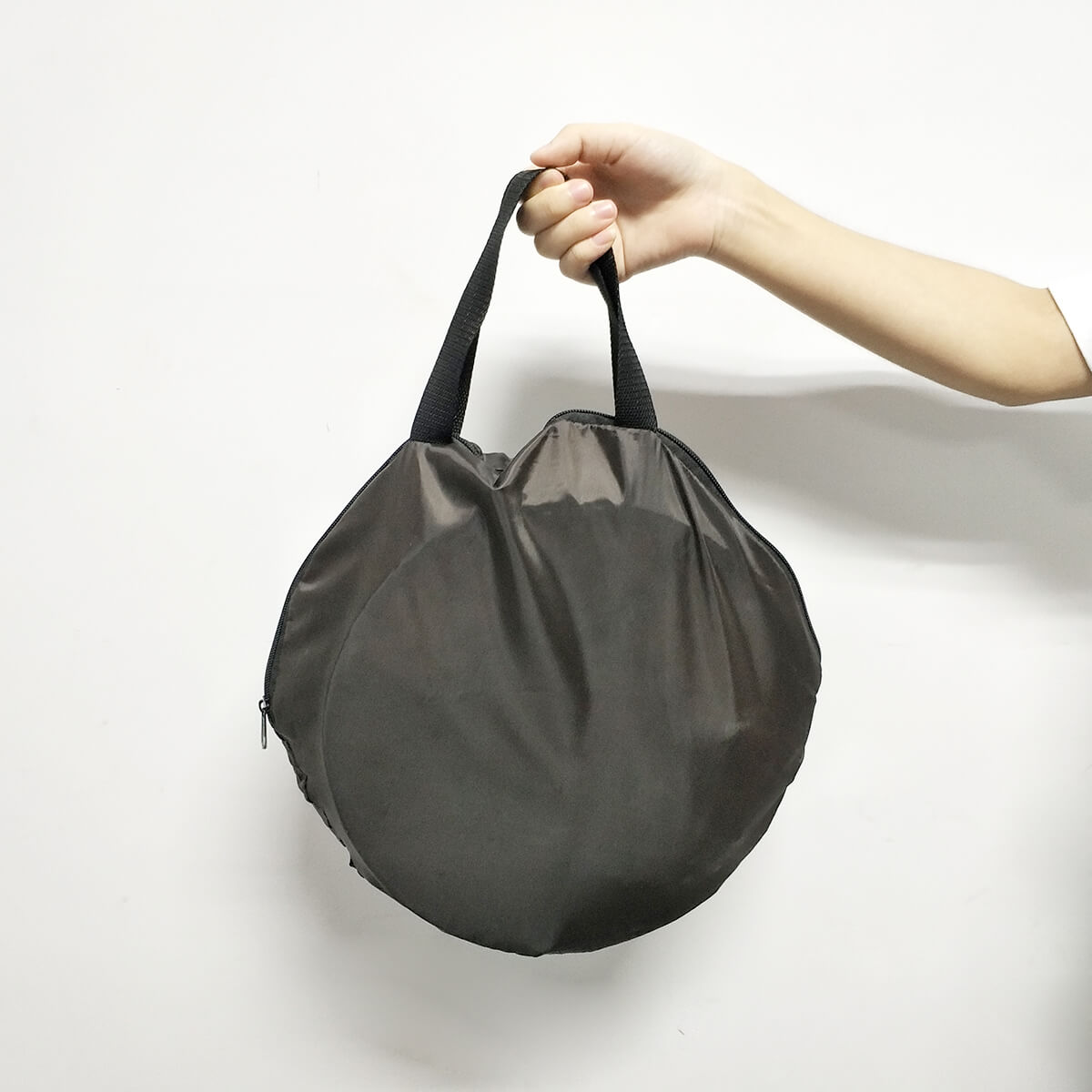 Zusammenfaltet wird es wie ein Wurfzelt ohne Werkzeug oder Stangen auf einen Durchmesser von nur 35 cm.