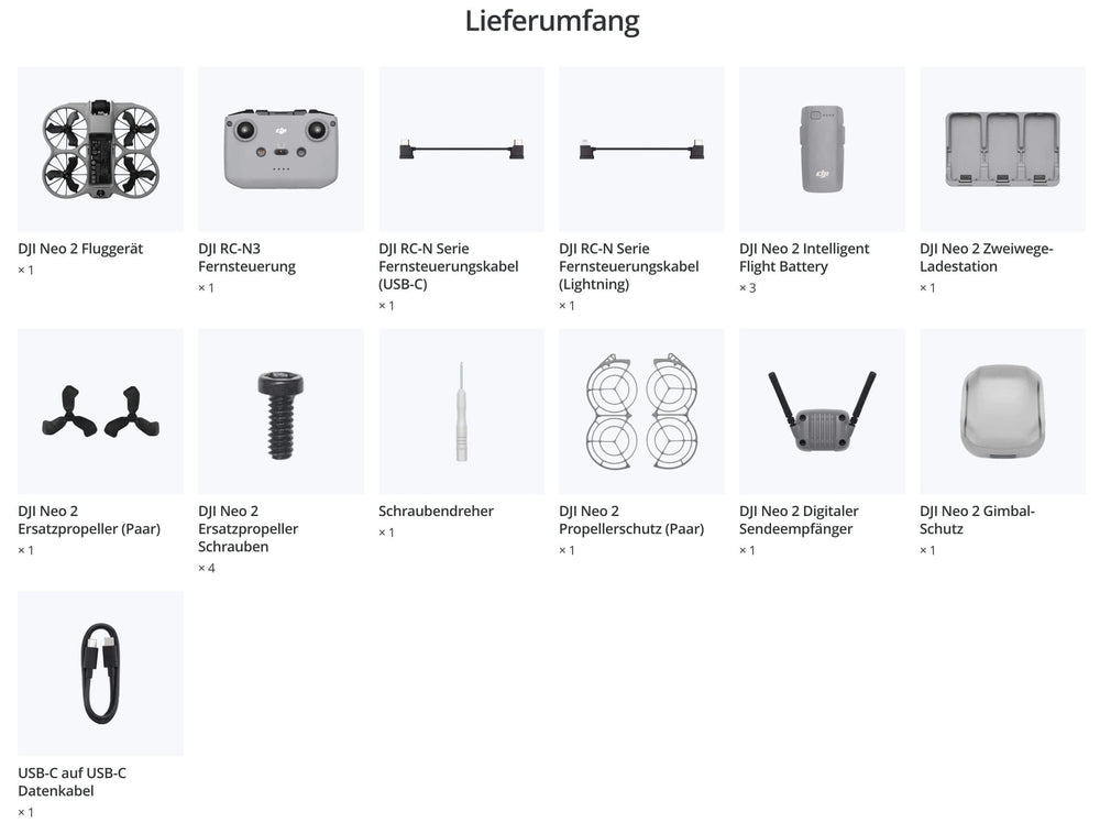 - USB-C Aufladung direkt an der Drohne oder Ladestation